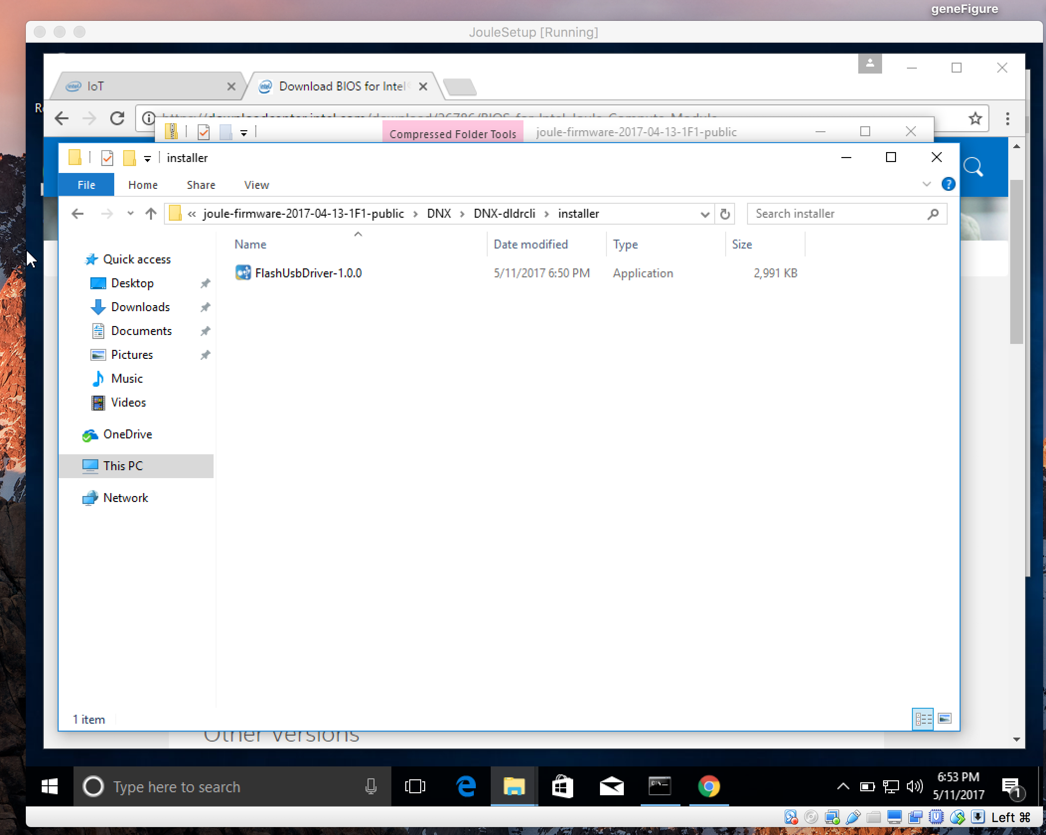 - Intel Joule BIOS 1F1 *Downlaod on Windows 10 Virtual Machine (Contains driver you will need to install as well )